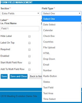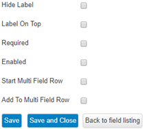 - Start Multi Field Row - This begins a row to add additional fields in horizontal line