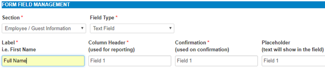 Once you select the edit icon, you are in the FORM FIELD MANAGEMENT: