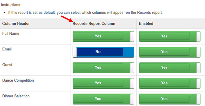 - Select which Report Columns you would like displayed in RECORDS tab