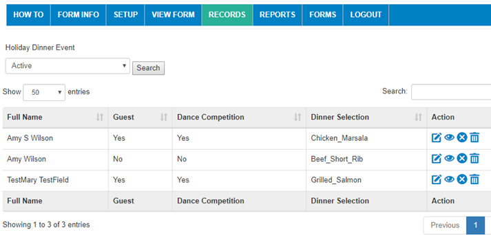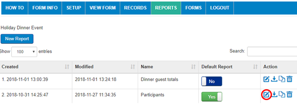 Now that you have completed the form in the SETUP Tab, below is the next step for setting up reports and records for your form.