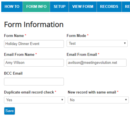 Now that you have created the name for a NEW FORM, below is the initial step for setting up your form by completing the below Information. This can be edited throughout the creation of the form.