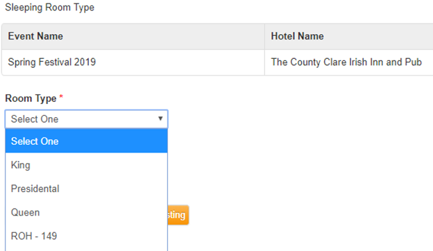 Once you click on New Sleeping Room, you arrive at the below SLEEPING ROOM TYPE page: