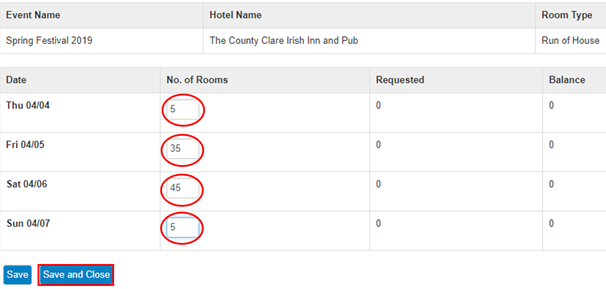 SAVE and CLOSE - now continue adding the contracted block to the rest of the room types you added.
